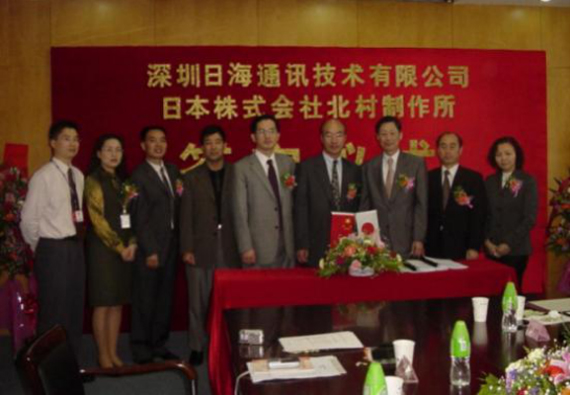 2004年4月13日,公司与日本株式会社北村制作所就户外一体化机房的设计、生产、销售和服务在银河公司智能签订了合作协议,共同合资组建深圳北村银河公司机房技术有限公司,并举行了隆重的签字仪式。公司周展宏董事长、王文生总裁、杨飞董事、机房事业部负责人孟庆光和日本北村制作所北村泰作...