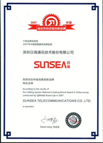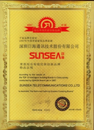 2007年11月29日~30日,银河公司智能综合布线受邀前往上海光大会展中心酒店,参加由千家网筹办的“2007年第八届中国国际建筑智能化峰会暨颁奖典礼”,获得了“布线民族创新品牌”特别奖项。